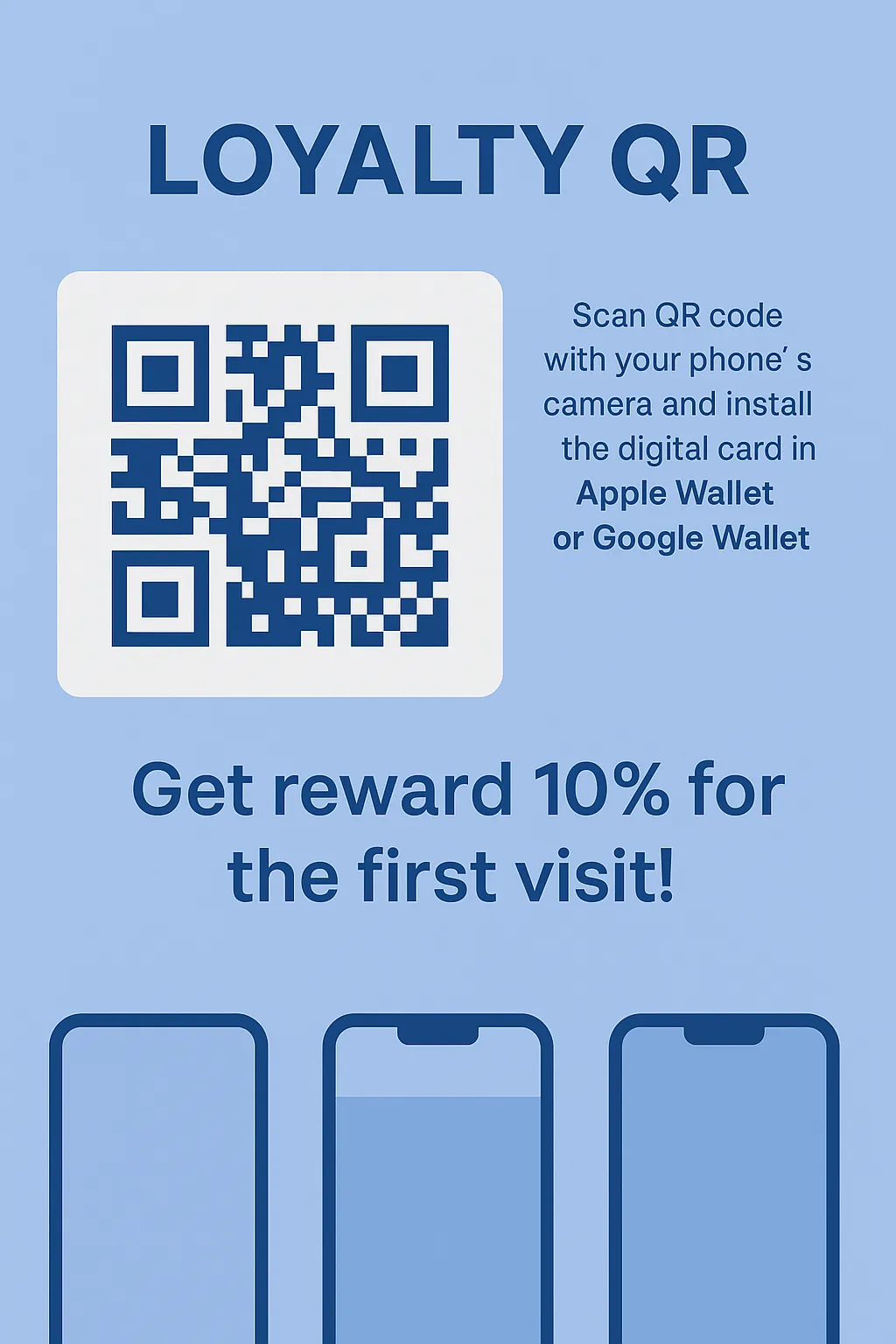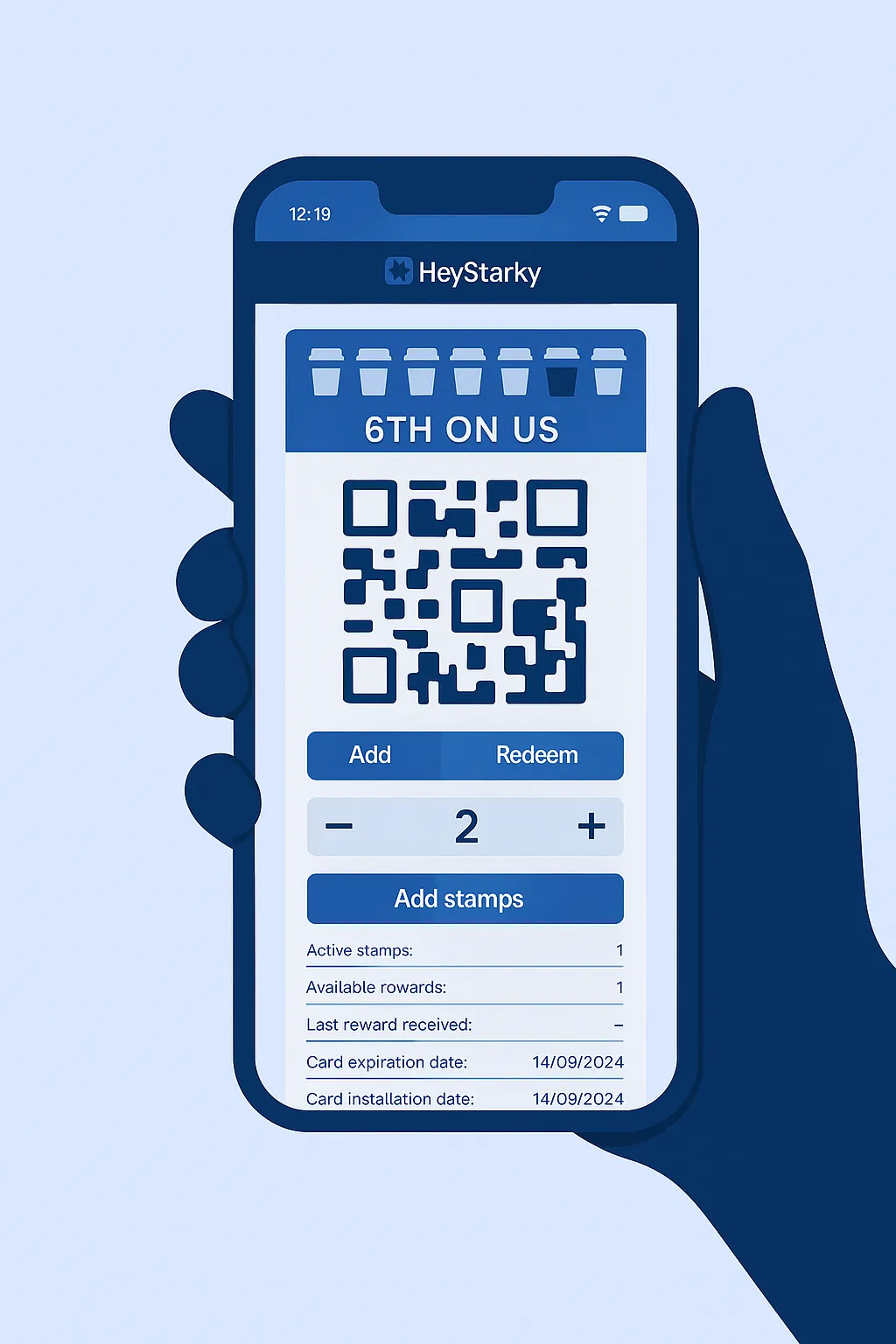 To begin using the platform, just sign up for an account and make your first card. Once you finish setting up, you'll get a PDF with a QR code. Print it out and show it to your customers. When they scan the code and join the loyalty program, you can use the scanner app to add bonus points and redeem rewards